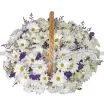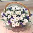 Стандартный: хризантема белая кустовая ромашковидная - 9 шт., статица - 4 шт., декоративная зелень, оазис, корзина средняя.