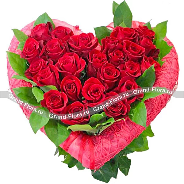 Букет из красных роз на оазисе. Идеальный подарок любимому человеку на День Святого Валентина.