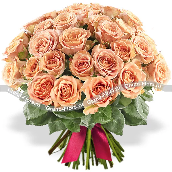 Роза Капучино 60 см. - 35 шт., упаковка, лента.